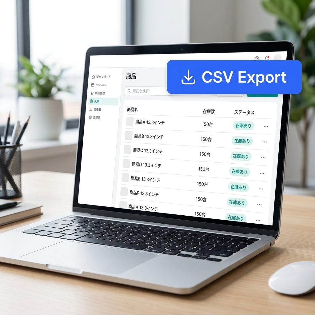 「商品データ」と「入出庫履歴」をCSV形式でダウンロードできるかは、必須のチェック項目です。
